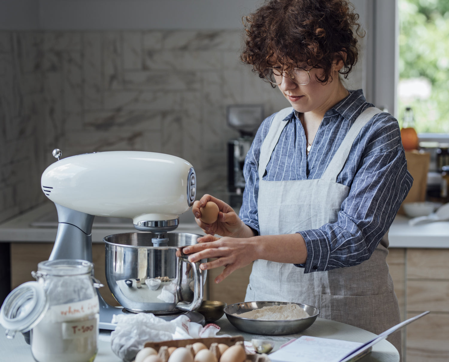 Füge das Ei, das Vanilleextrakt und das Salz hinzu und schlage erneut bei mittlerer Geschwindigkeit, bis alles gut vermischt ist. Die Mischung sollte cremig und homogen sein.